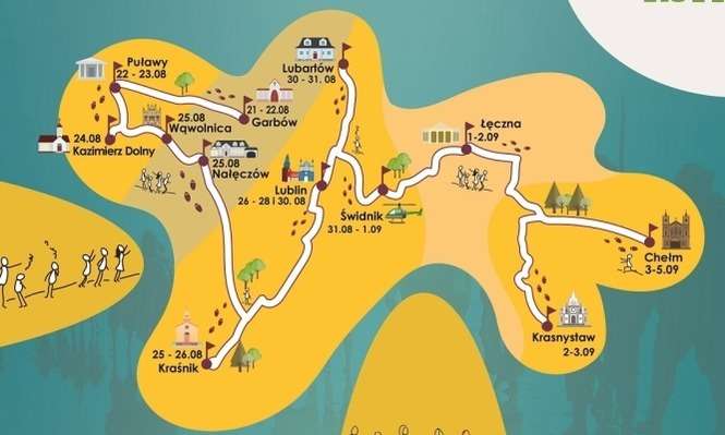 Znaki ŚDM będą peregrynować po parafiach do 5 września. Odwiedzą kościoły w 12 miastach i miejscowościach – poza Garbowem będą także w Puławach, Lublinie, Kazimierzu Dolnym, Wąwolnicy, Kraśniku, Krasnystawie i Chełmie (patrz mapka).