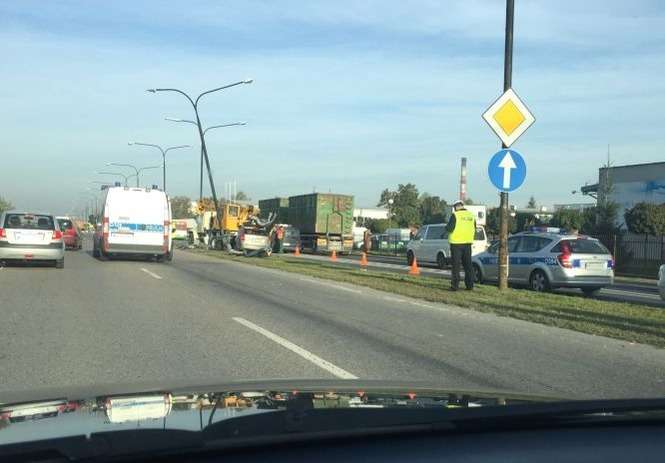Policjanci ustalają okoliczności wypadku, do którego doszło kilka minut po god. 7:00 przy al. Witosa w Lublinie.