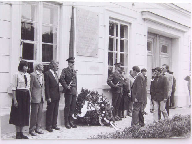 – Obecni przy tym byli profesor Michał Strzemski, Zygmunt Nowakowski, Alicja Bobrowska, Stanisław Zadura – wylicza historyk. – W ich obecności odkopano tablicę i zdecydowano kiedy odbędzie się uroczyste odsłonięcie. Próbowano ustalić nazwiska tych robotników, którzy nie zważając na niebezpieczeństwo schowali tablicę, ale udało się ustalić tylko jedno nazwisko – Nieleszczuk.