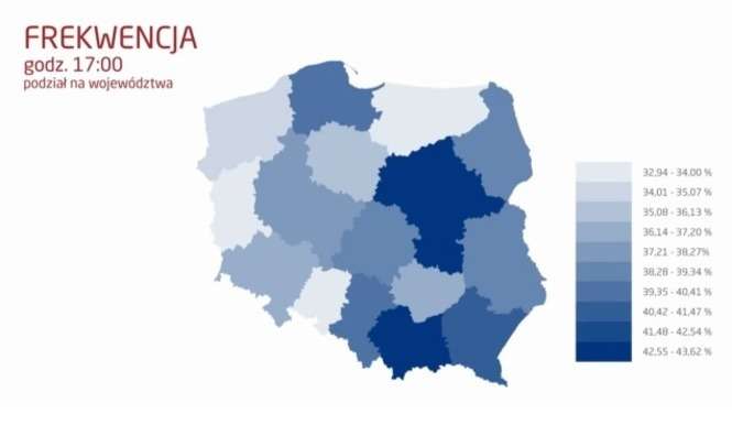 Na terenie zamojskiej delegatury KBW do godz. 17 frekwencję najwyższą frekwencję zanotowano w gminie Krasnobród (41,37 proc.), najniższą – w gminie Lubycza Królewska (26,21 proc.). Frekwencja w miastach powiatowych:
