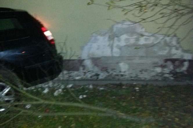 Kierowca zniszczył elewację budynku, pękła też ściana.