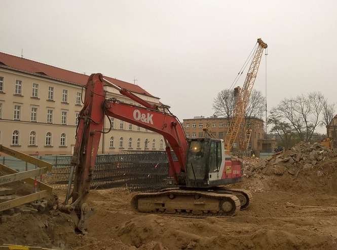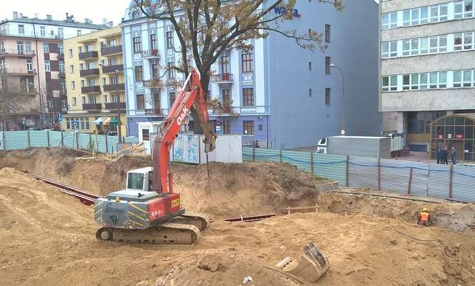 Prace od początku toczą się szybko i z góry widać już, w których miejscach będą się znajdować tzw. ściany szczelinowe (na zdjęciu) będące podstawą nowego biurowca, a wchodzące w grunt na głębokość 18 metrów. Aby je wykonać należy wykopać w ziemi rów, który następnie wypełnia się betonem. Takie ściany powinny być gotowe w styczniu. Wtedy też będzie można wybrać spomiędzy nich ziemię, a na dnie powstałej w ten sposób niecki wykonana zostanie płyta fundamentowa. To na niej zacznie rosnąć budynek.