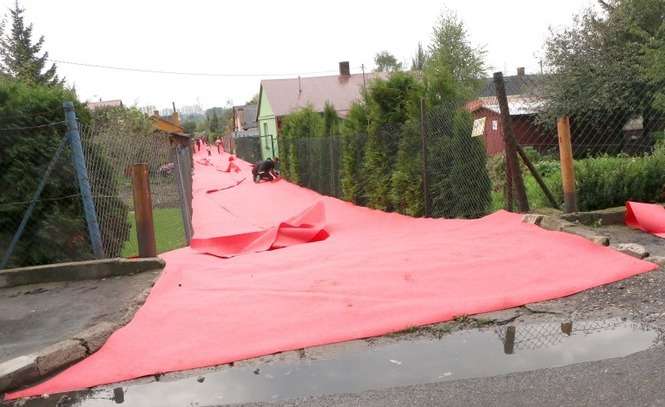 - Naszym celem było po prostu rozłożenie dywanu, chciałam jakoś umilić życie mieszkańcom tej ulicy. Nic ponadto. Co mnie zainspirowało? Sama Dzierżawna. Byłam tam kilka razy, nie da się przejść ta ulicą nie brudząc sobie butów. Tłumaczyła w 2014 roku Monika Drożyńska, autorka instalacji „Czerwony dywanik”. Z jej inicjatywy ulicę pokrył 300-metrowy czerwony dywan. Instalacja miała spełniać przede wszystkim funkcję praktyczną, ale też wprowadzić w niezbyt uroczą okolicę trochę koloru. Akcja podzieliła mieszkańców. Jedni biegali w skarpetkach i się cieszyli inni narzekali na wyrzucone pieniądze i że to żartowanie z ich fatalnej sytuacji życiowej.