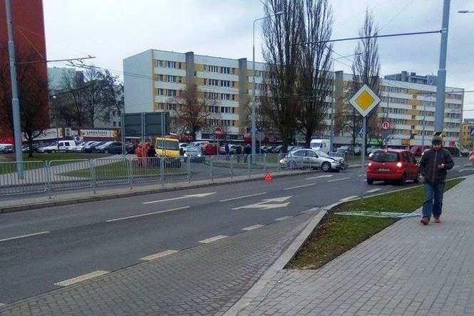 Są utrudnienia w ruchu, gdyż na jezdni rozlał się olej, który wyciekł z jednego z samochodów. Zajmie się nim firma sprzątająca.
