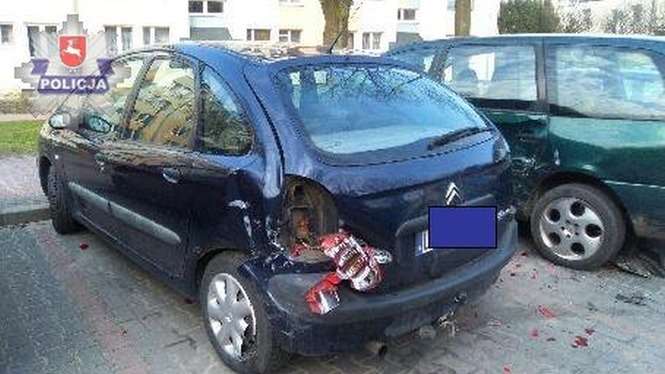 Tego samego dnia policja z Puław dostała zawiadomienie o uszkodzeniu kilku pojazdów przez kierującego BMW. Jadąc ulicą Wróblewskiego, stracił panowanie nad autem i uderzył w cztery inne samochody. Po wszystkim mężczyzna odjechał z miejsca zdarzenia.