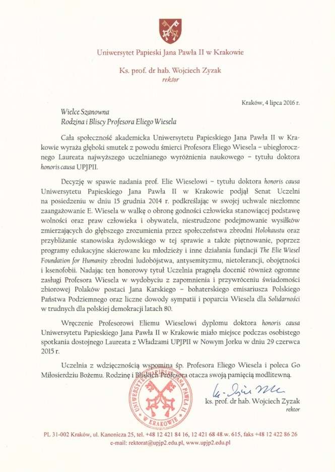 Ja zapamiętam Elie Wiesela z wielu powodów. Najbardziej chyba jednak z sytuacji, kiedy za jego wsparciem, Jan Karski pośmiertnie otrzymał Prezydencki Medal Wolności. Było oczywiste, że order powinna odbierać rodzina bohatera. Napotkało to jednak dziki opór ówczesnego MSZ. Podobnie jak inna opcja, że medal odbierze Elie Wiesel i przywiezie do Polski.