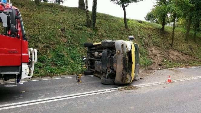 Kierujący busem 25-letni mężczyzna, wyjeżdżając z zakrętu stracił panowanie nad pojazdem. Samochód zjechał z jezdni na pobocze, uderzył w ziemną skarpę po czym przewrócił się na bok.