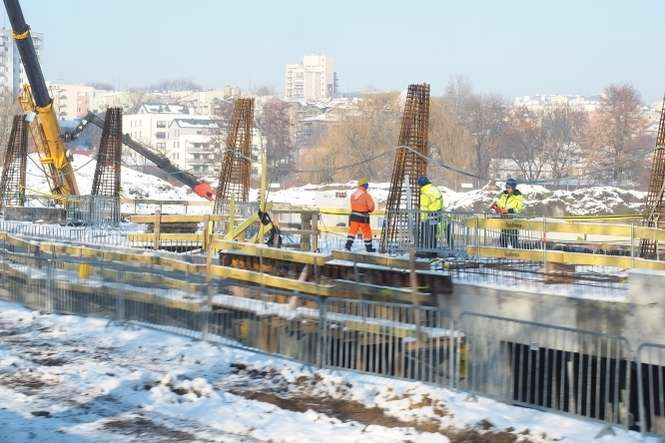 Zima nie zamroziła też robót na budowie nowego mostu na Bystrzycy na przedłużeniu ul. Muzycznej.