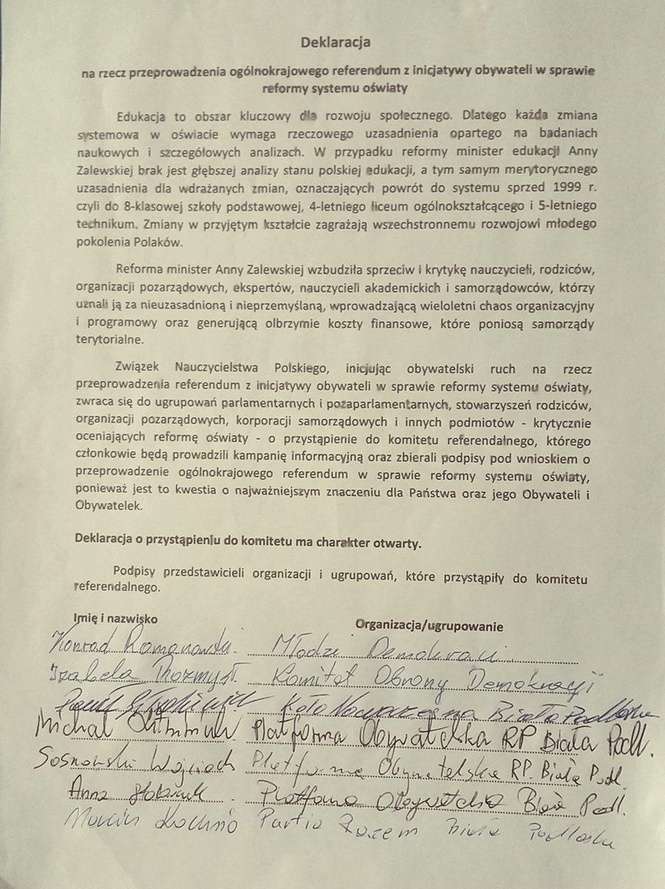 W Białej Podlaskiej trwa zbiórka podpisów w sprawie referendum. Deklarację podpisał m.in. Michał Litwiniuk, szef lokalnych struktur PO, ale przede wszystkim wiceprezydent odpowiedzialny właśnie za oświatę.
