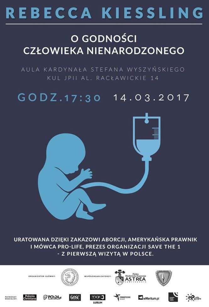 Rebecca Kiessling przyjechała do Polski na cykl wykładów otwartych organizowanych przez Instytut na rzecz Kultury Prawnej Ordo Iuris. Spotkania z nią miały odbyć się na Uniwersytecie Warszawskim, KUL, Uniwersytecie Jagiellońskim, Uniwersytecie Wrocławskim, Uniwersytecie Mikołaja Kopernika w Toruniu oraz w Centrum Kultury w Łomiankach.