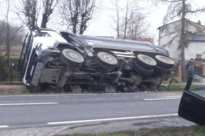 - Opel jechał w kierunku Lublina, zjechał na przeciwległy pas i czołowo zderzył się z ciężarowym volvo. Kierowca opla jest zakleszczony w pojeździe, a ciężarówka przewróciła się na bok - mówi starszy sierżant Kamil Karbowniczek z lubelskiej policji.