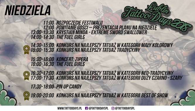 Podczas festiwalu tatuaży odbędą się konkursy na najlepsze tatuaże, zlot food trucków, strefa mody, wystawy customowych aut, rowerów i motocykli.
