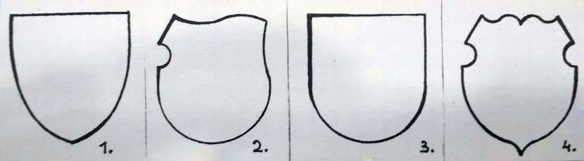 I tak tzw. szlachta odwieczna, czyli rodziny najstarsze, używały tarczy trójkątnej, zwanej również francuską starszą (wzór 1), często spotykanej w XIV wieku. Rodziny najstarsze, a także nieco młodsze, używały w herbie tarczy turniejowej z bocznym wycięciem na kopię (wzór 2). To był wiek XV-XVI. Trzeci rodzaj tarczy – tarcza hiszpańska, posiadała zaokrągloną podstawę (wzór 3). I wreszcie tarcza polska (wzór 4), podobna do turniejowej, ale z dwoma wycięciami z obu stron głowicy, była tworem sztucznym, nie mającym uzasadnienia w nazwie. Wydaje się, że tarczę występującą w herbie „Pogoń” zaliczyć można do tej ostatniej grupy.