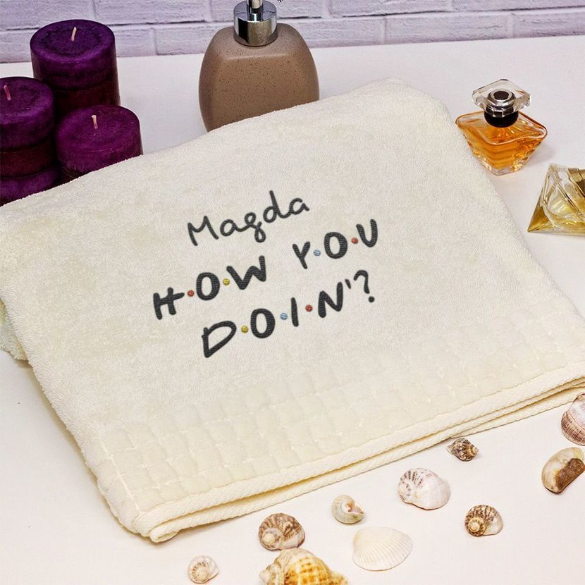 A może w tym roku odwiedzi Was dla odmiany świąteczny pancernik? W tym momencie wszyscy fani “Przyjaciół” z pewnością się uśmiechnęli. Jeśli Twoja dziewczyna, żona, siostra albo koleżanka uwielbia ten serial, możesz sprawić jej wspaniałą mikołajkową niespodziankę. How you doin’? - ręcznik z haftem to uroczy i praktyczny prezent na mikołajki, który nawiązuje do słynnego tekstu na podryw Joey’a. Coś takiego zawsze poprawi nastrój, a przy tym zapewni doskonały komfort po kąpieli. Gwarantujemy, że każda fanka “Przyjaciół” będzie zachwycona takim upominkiem. W tym momencie nie pozostaje nam nic innego, jak zaprosić Cię do obejrzenia wszystkich ręczników w kolekcji sklepu internetowego MyGiftDNA.