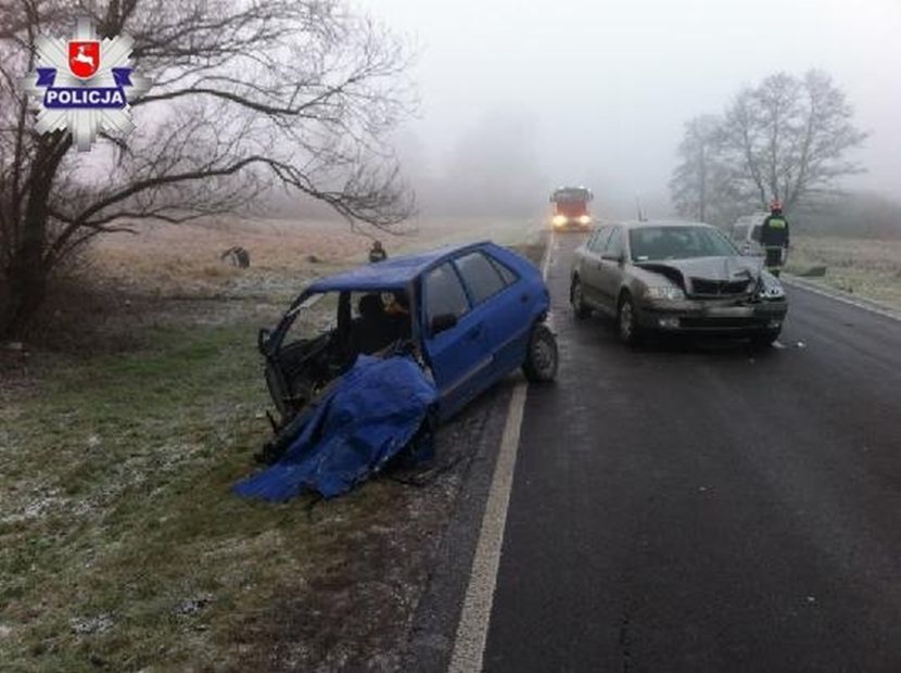 Do wypadku doszło dziś po godz. 7. Jak informuje policja, kierujący skodą felicją 20-latek, podczas wyprzedzania w gęstej mgle, zderzył się czołowo z mercedesem sprinterem. Wyprzedzana przez niego skoda octavia również nie uniknęła zderzenia. Okazało się, że 20-latek z gm. Urszulin nie miał uprawnień do kierowania.