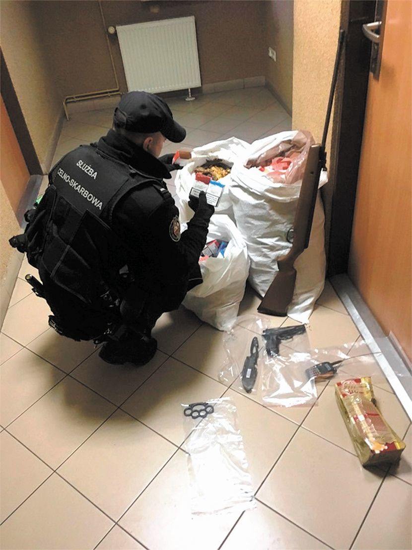 Efektem działań kontrolnych było ujawnienie, a następnie zatrzymanie towarów, w tym m.in.: papierosów, tytoniu krojonego i suszu tytoniowego oraz kilku urządzeń służących do nabijania tytoniem gilz papierosowych. Funkcjonariusze zabezpieczyli ponadto puste gilzy do nabijania tytoniem oraz gilzy w opakowaniach udających „firmowe” - w sumie ponad 22 tys. szt., a także ponad 1,5 tys. pustych opakowań na papierosy.
