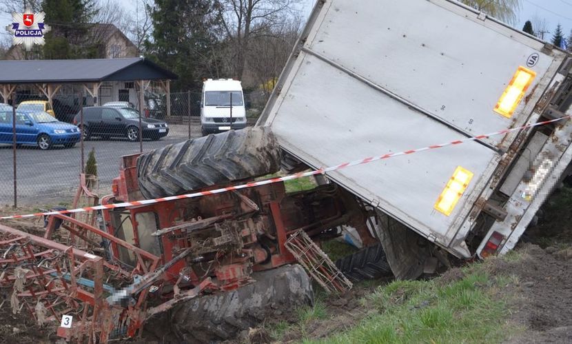 Do wypadku doszło wczoraj ok. 17.40 na krajowej „17”. Samochód ciężarowy jechał od strony Zamościa i zaczepił o jadący w tym samym kierunku ciągnik rolniczy. Oba pojazdy wpadły do rowu, a traktor został przygnieciony przez naczepę.