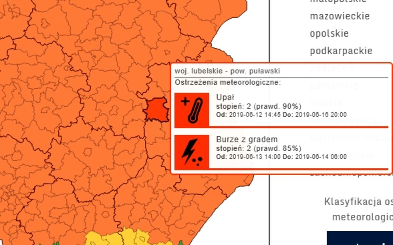 Według ostrzeżenie IMGW dla powiatu puławskiego, upały zostaną z nami przynajmniej do niedzieli. W tym czasie na termometrach słupek rtęci za dnia będzie utrzymywał się w przedziale 30-33 stopni Celsjusza. Trochę wytchnienia da nam jedynie piątek, kiedy to ma być o kilka stopni mniej.