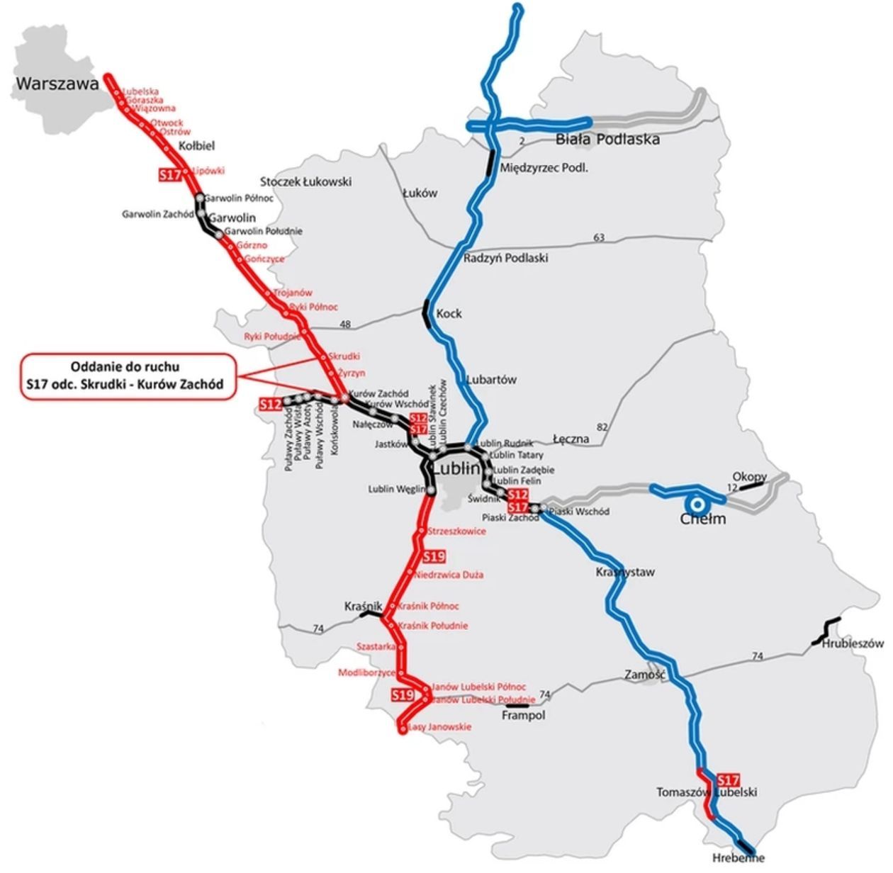 Fragment S17, od węzła Kurów Zachód do węzła Skrudki kosztował w sumie 370 mln zł. Na razie sam węzeł Skrudki będzie zamknięty, ale tylko przez ok. dwa lub trzy miesiące.