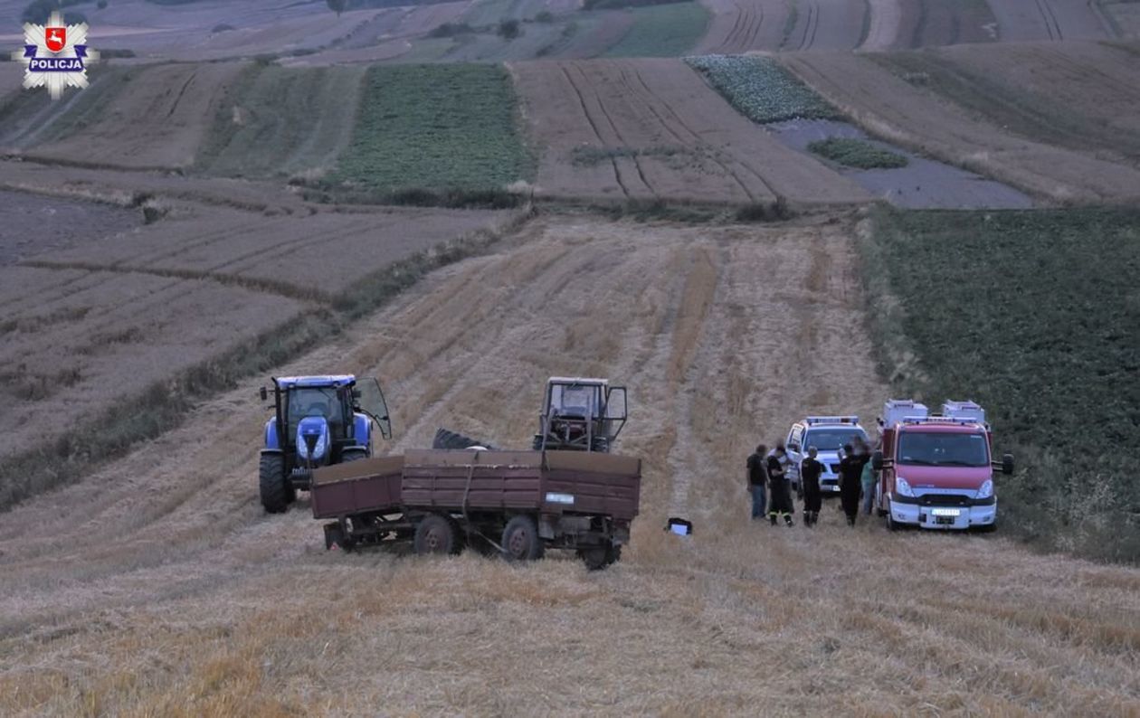 Jak wstępnie ustalili policjanci, do wypadku doszło kiedy 57-letni mieszkaniec gminy Szczebrzeszyn, kierujący ciągnikiem rolniczym z dwoma przyczepami wypełnionymi zbożem zjeżdżał ze stromego wzniesienia.