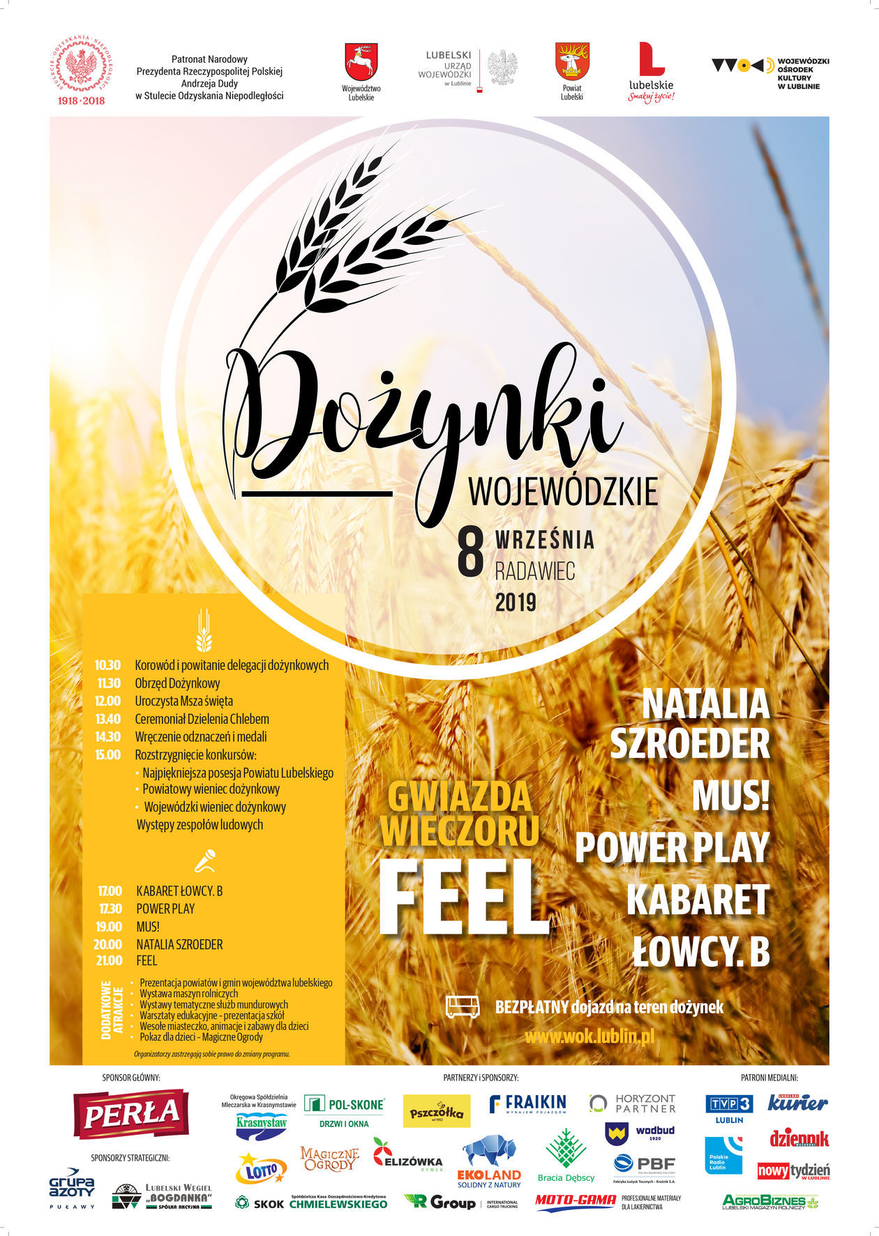 Dożynki rozpoczynają się o godz. 10.30 korowodem dożynkowym. Później uczestnicy dożynek będą dziękować za tegoroczne plony modląc się podczas uroczystej mszy św. W dalszej części dożynek zostaną wręczone medale i odznaczenia. Rozstrzygnięte zostaną też konkursy – na najpiękniejszą posesję powiatu lubelskiego a także wieniec dożynkowy – powiatowy a później wojewódzki.
