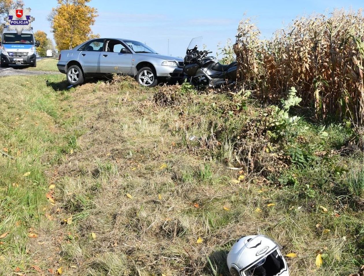 Ciężko ranny motocyklista został przetransportowany do szpitala w Lublinie. Kierowcy byli trzeźwi.