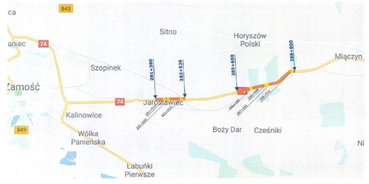 Jak informuje GDKIA w Lublinie w ramach inwestycji przebudowane zostaną dwa odcinki drogi DK74 między Jarosławcem a Miączynem o łącznej długości ok. 4,3 kilometra. Jezdnia dostosowana będzie do parametrów drogi GP, zostanie poszerzona do 7 metrów, a jej konstrukcja wzmocniona tak, by mogła przenosić obciążenia do 11,5 t/oś. Zaplanowano także budowę chodników oraz ciągów pieszo-rowerowych, rozbudowę skrzyżowań i oświetlenia drogowego, a także przebudowę zatok autobusowych.
