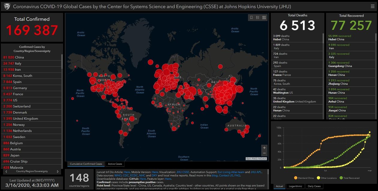 - 169 387 potwierdzonych przypadków chorych na COVID-19 na świecie
