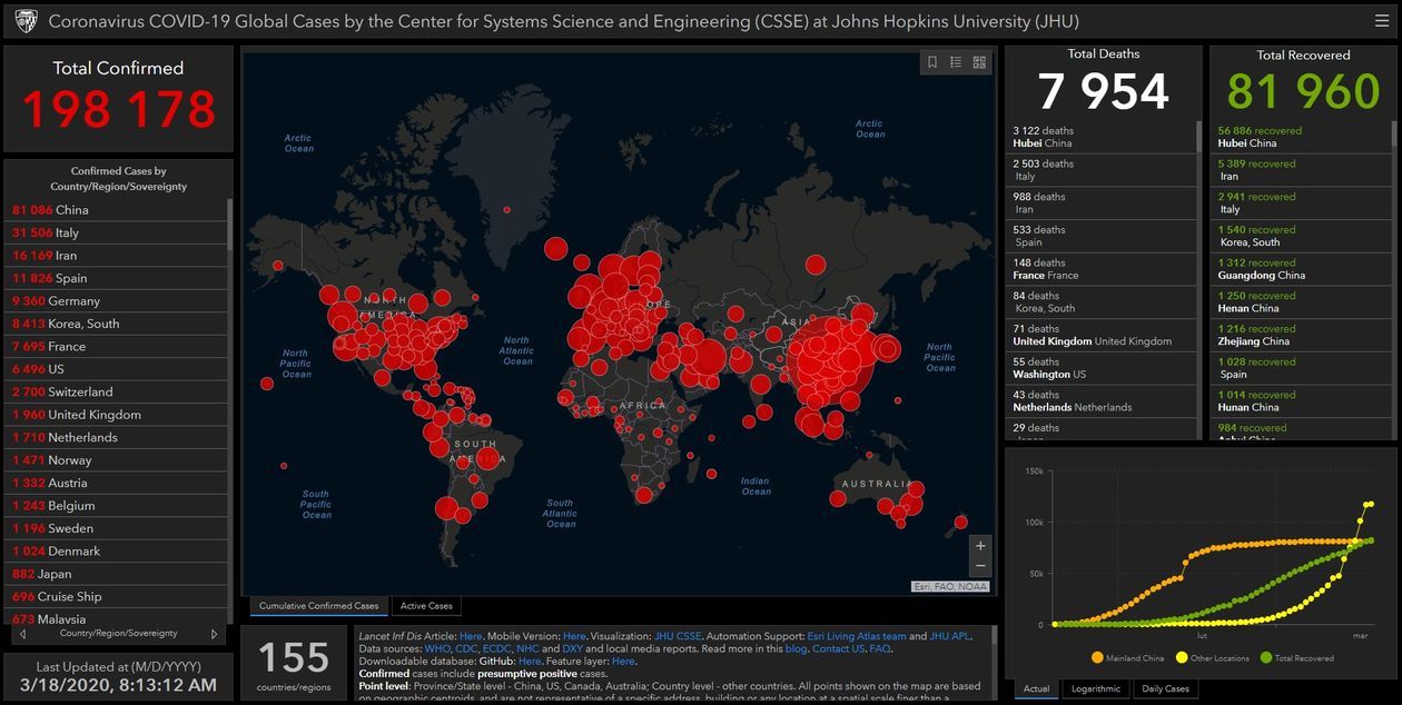 - koronawirus dotarł do 155 krajów