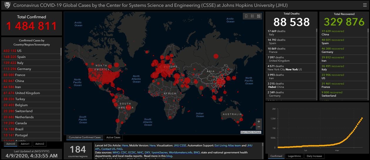 - 1 484 811 osób zakażonych wirusem SARS-CoV-2 na świecie