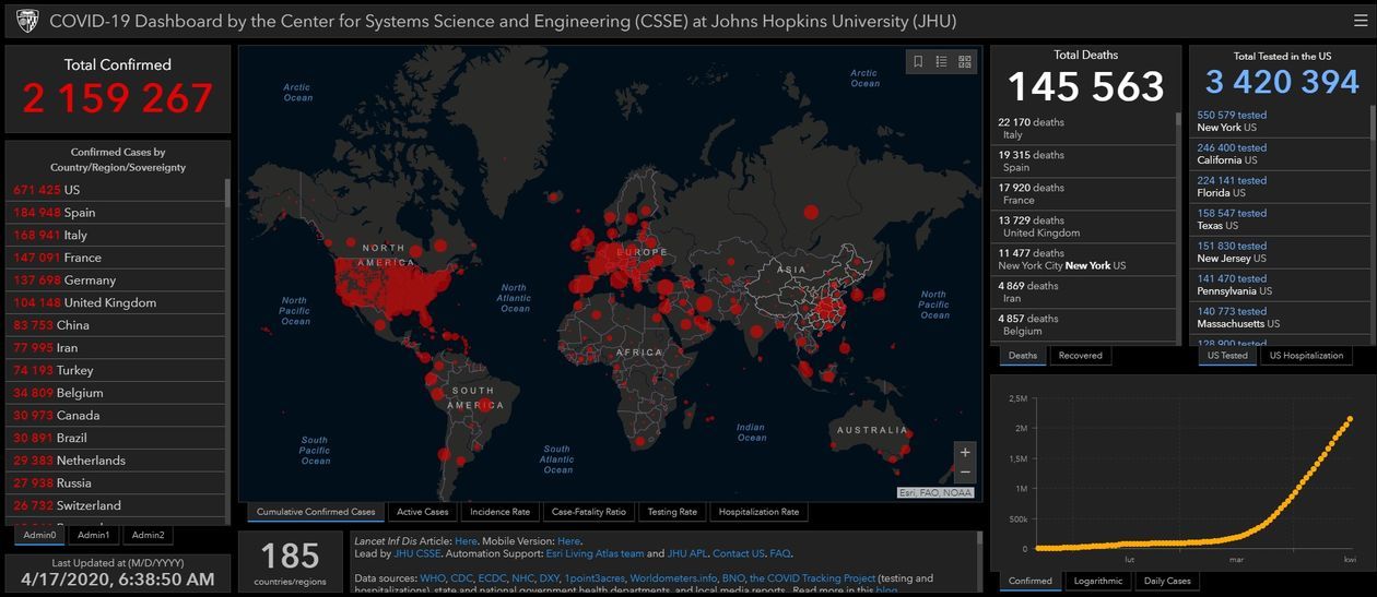 - 2 159 267 osób zakażonych wirusem SARS-CoV-2 na świecie