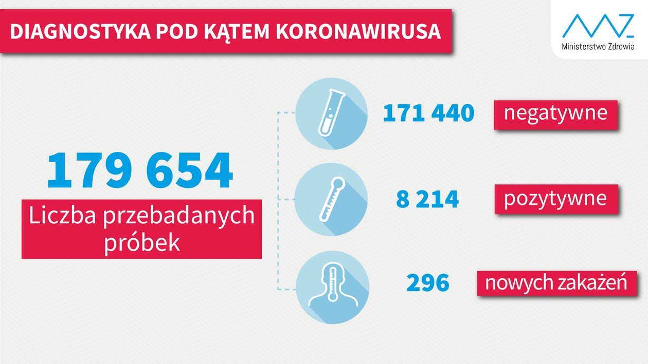 165 nowych potwierdzonych zakażeń koronawirusem w Polsce Liczba chorych wzrosła do 8379