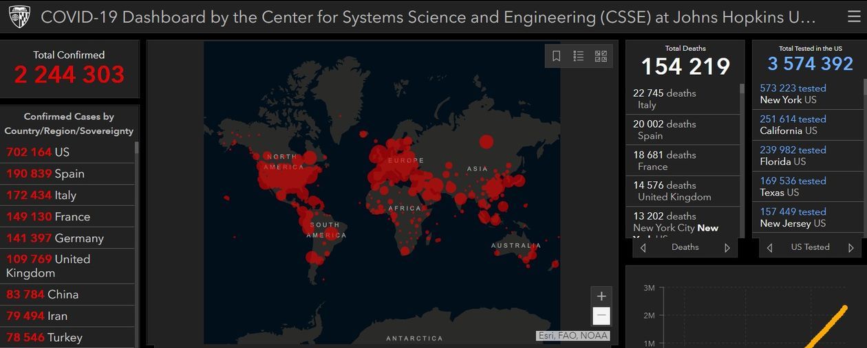 - 2 244 303 osób zakażonych wirusem SARS-CoV-2 na świecie