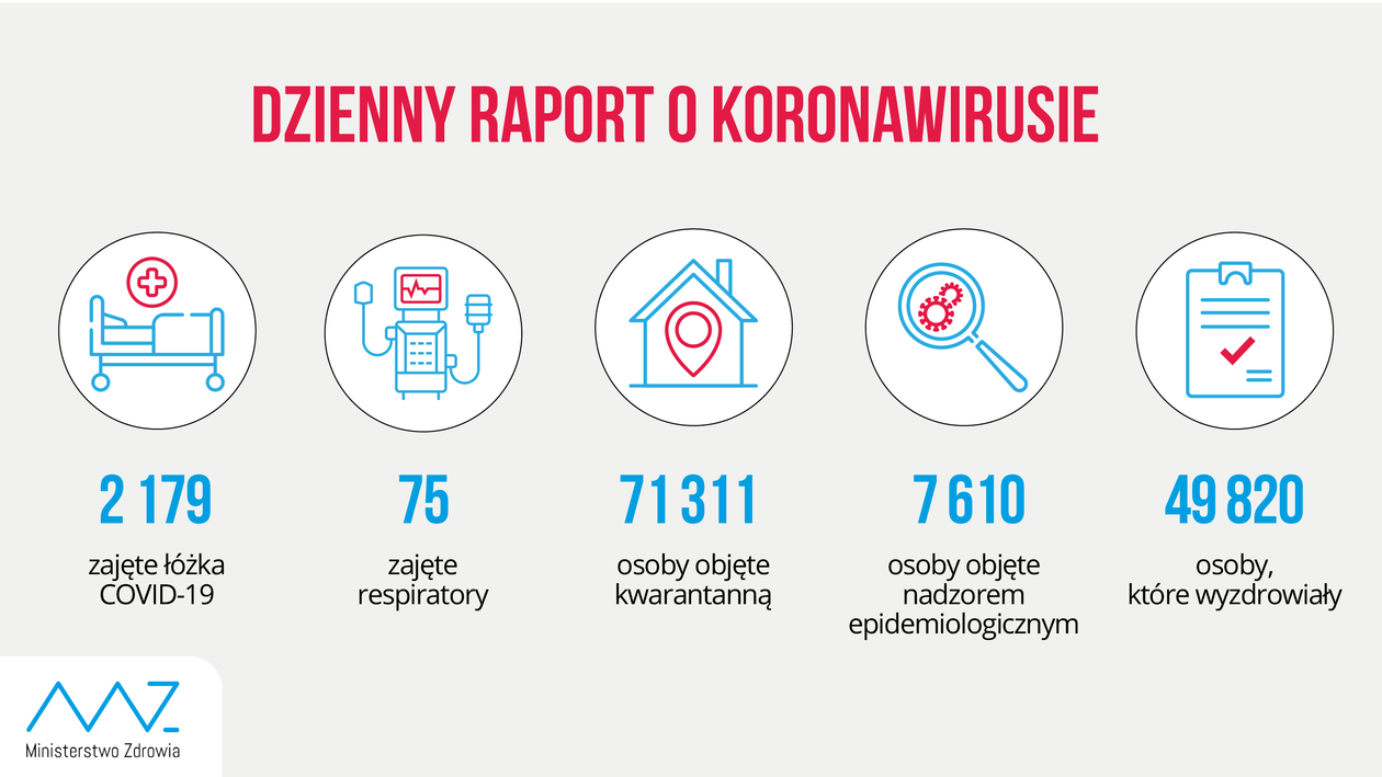 Resort Zdrowia poinformował też o śmierci ośmiu osób zakażonych koronawirusem. Zmarli to: 79-letni mężczyzna, 58-letni mężczyzna (Poznań), 74-letni mężczyzna (Koszalin), 87-letnia kobieta (Chorzów), 87-letni mężczyzna (Starachowice), 79-letnia kobieta, 95-letni mężczyzna i 89-letnia kobieta (Kraków). Większość osób miała choroby współistniejące.
