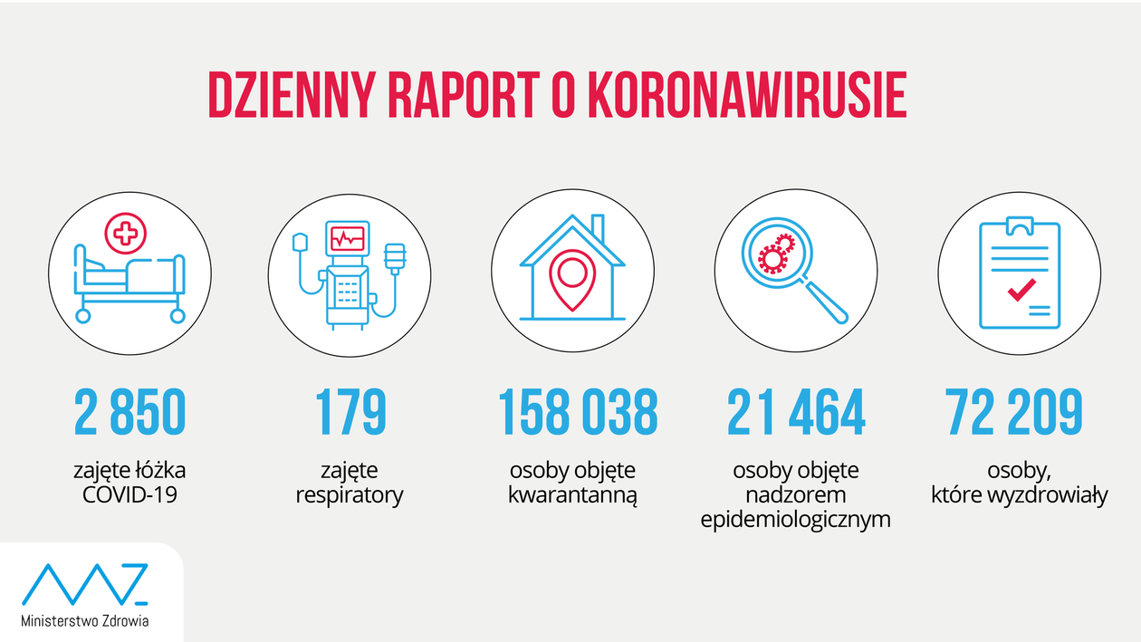 Nowe zakażenia są z województw: małopolskiego (290), mazowieckiego (277), pomorskiego (244), wielkopolskiego (224), śląskiego (221), świętokrzyskiego (156), łódzkiego (152), podkarpackiego (141), podlaskiego (126), lubelskiego (116), kujawsko-pomorskiego (110), warmińsko-mazurskiego (76), dolnośląskiego (63), zachodniopomorskiego (62), lubuskiego (56), opolskiego (53).
