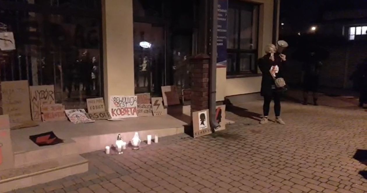 Do zdarzenia miało dojść w sobotę po godz. 23. Tymczasem, kilka godzin wcześniej dotarł tam „spacer kobiet”. Mieszkańcy w ten sposób protestują przeciwko orzeczeniu Trybunału Konstytucyjnego dotyczącego aborcji. – Mam zdjęcie wykonane po zakończeniu naszego protestu, na którym widać, że nie było żadnego napisu na szybach. Musiał to zrobić ktoś po zakończeniu naszego zgromadzenia – zaznacza Izabela Rozmysł, jedna z organizatorek, w przeszłości związana z ruchem KOD. Taki spacer odbył się również w niedzielę. Protestujący zapalają na miejscu znicze i zostawiają tekturowe tabliczki z napisami potępiającymi decyzję Trybunału. Akcja ma być kontynuowana.