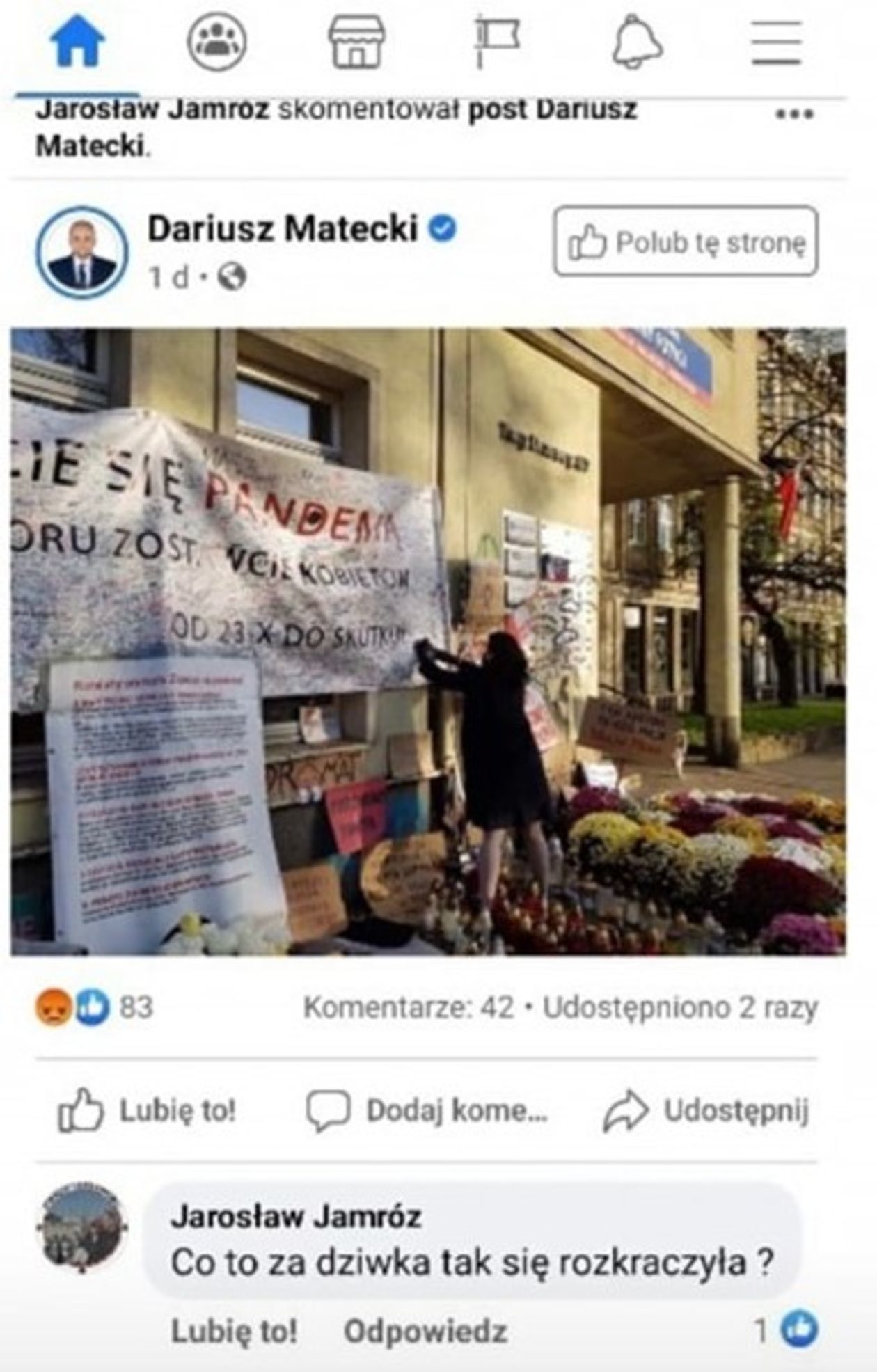 Jednym z komentujących był Jarosław Jamróz, miejski radny PiS i wiceprzewodniczący Rady Miasta Kraśnik.