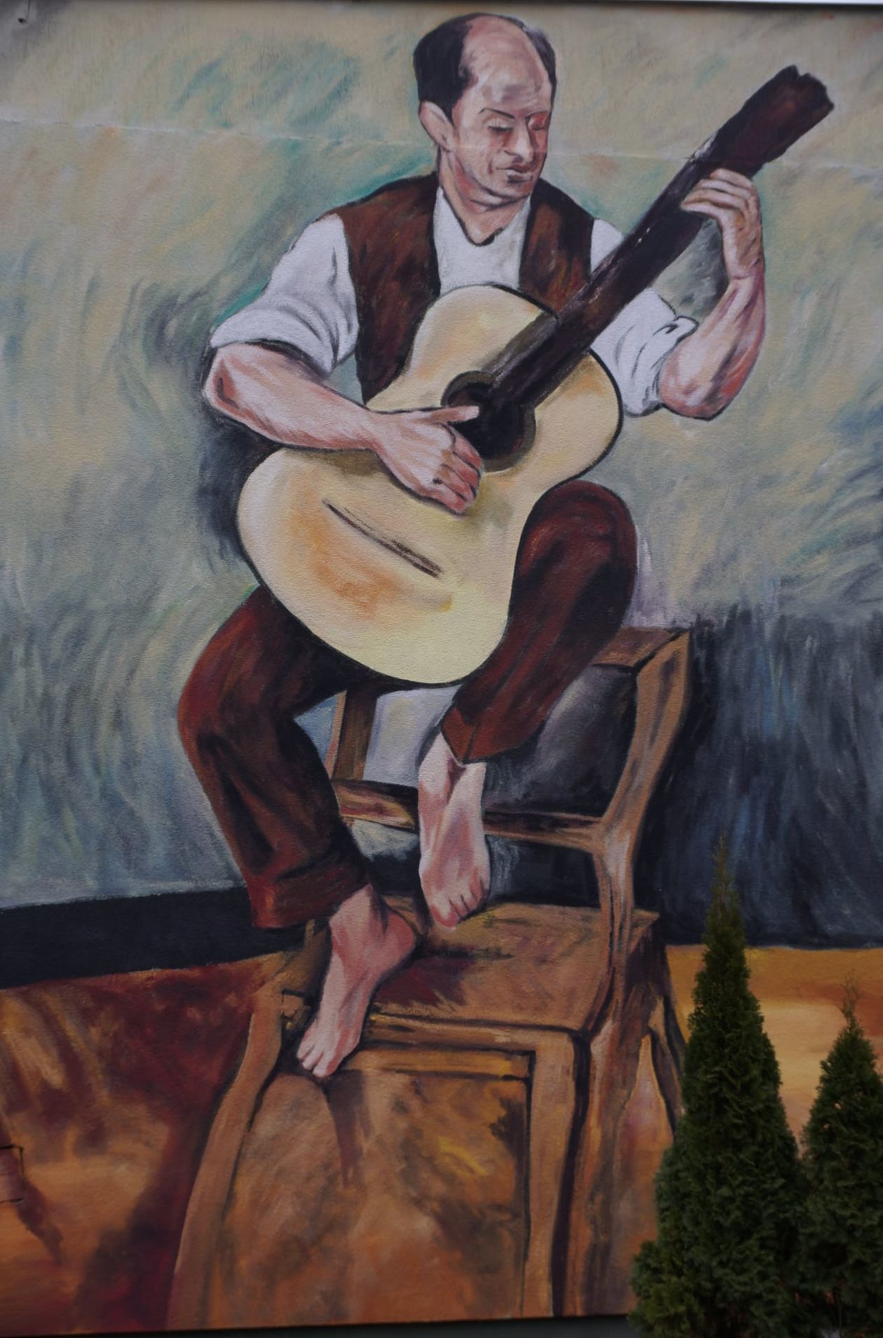 „Gitarzystę” na frontowej ścianie Chełmskiego Domu Kultury, który w oryginale ma 60 na 73 cm powiększono do rozmiarów 11 na 4,5 metra.
