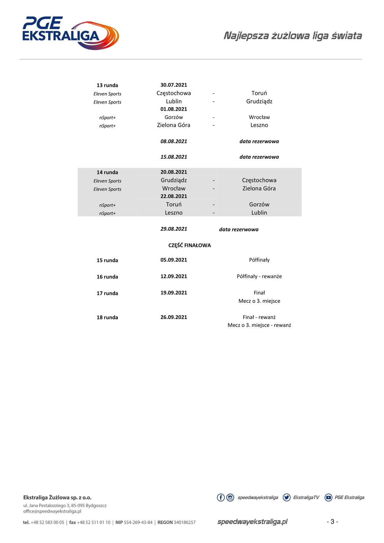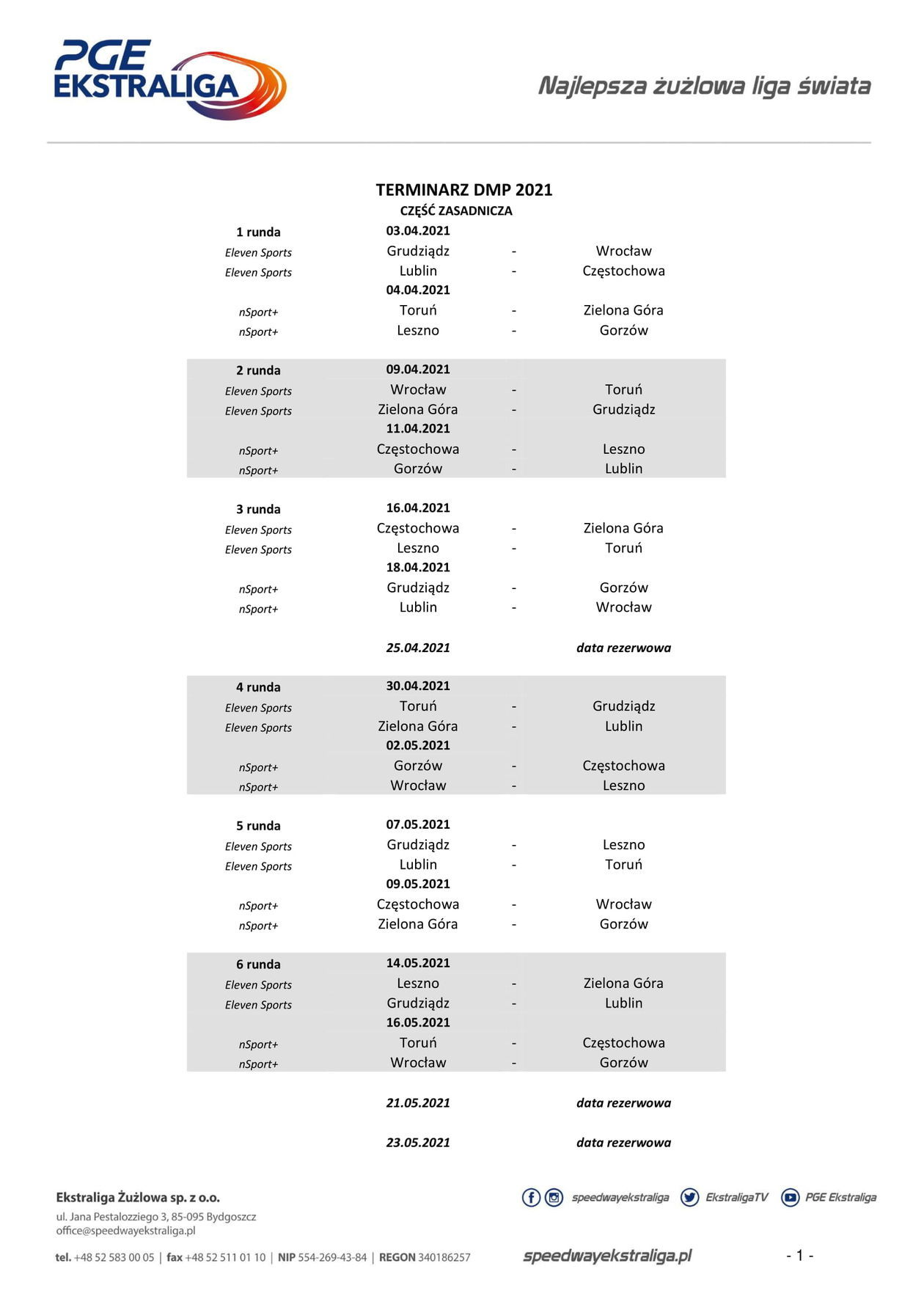 Poniżej pełen terminarz PGE Ekstraligi w sezonie 2021: