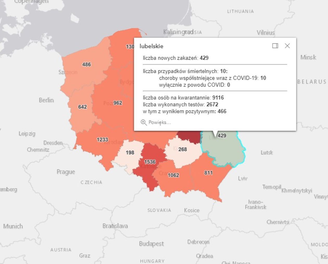 Najwięcej nowych przypadków zakażeń wykryto w Lublinie (90).