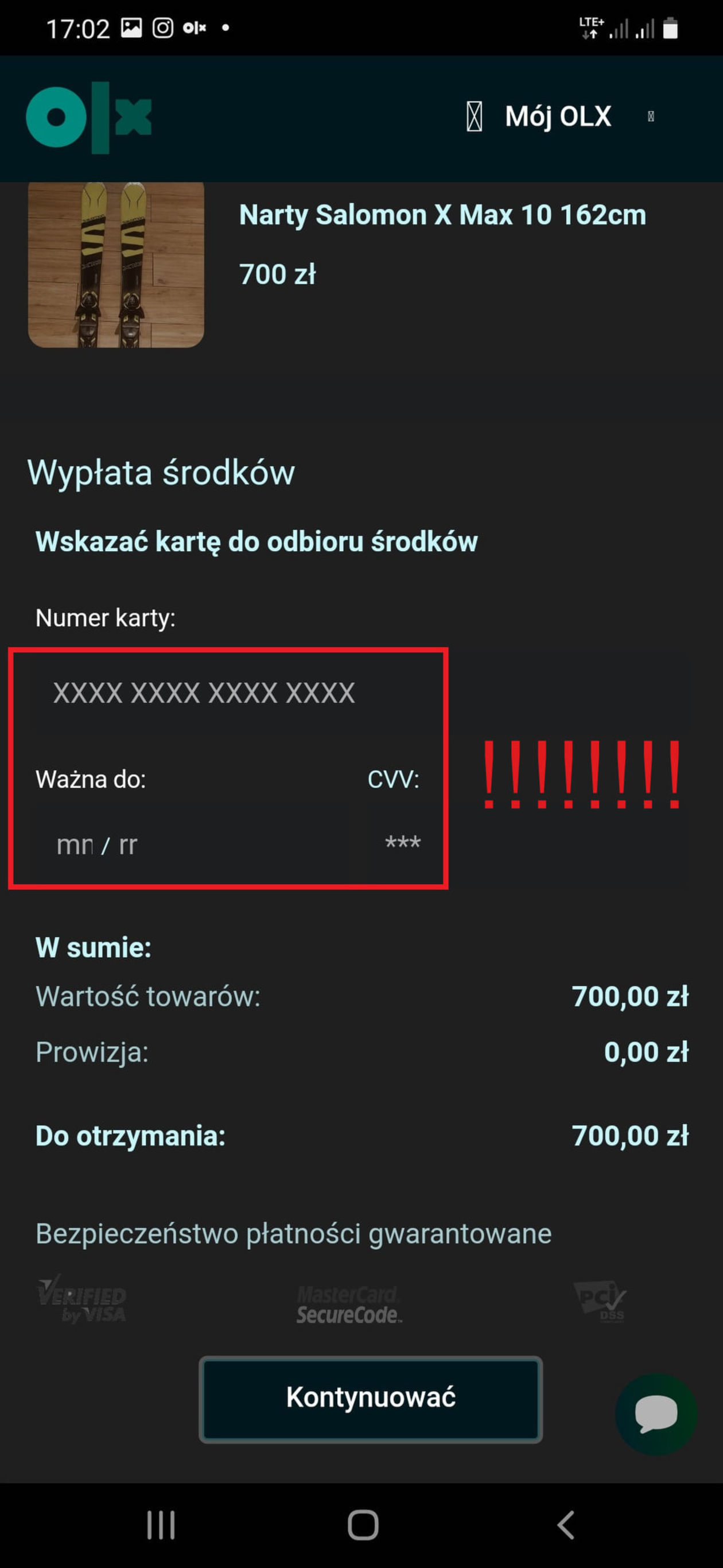 - W linku mamy podać dane naszej karty płatniczej. (numer, ważność i CVV)