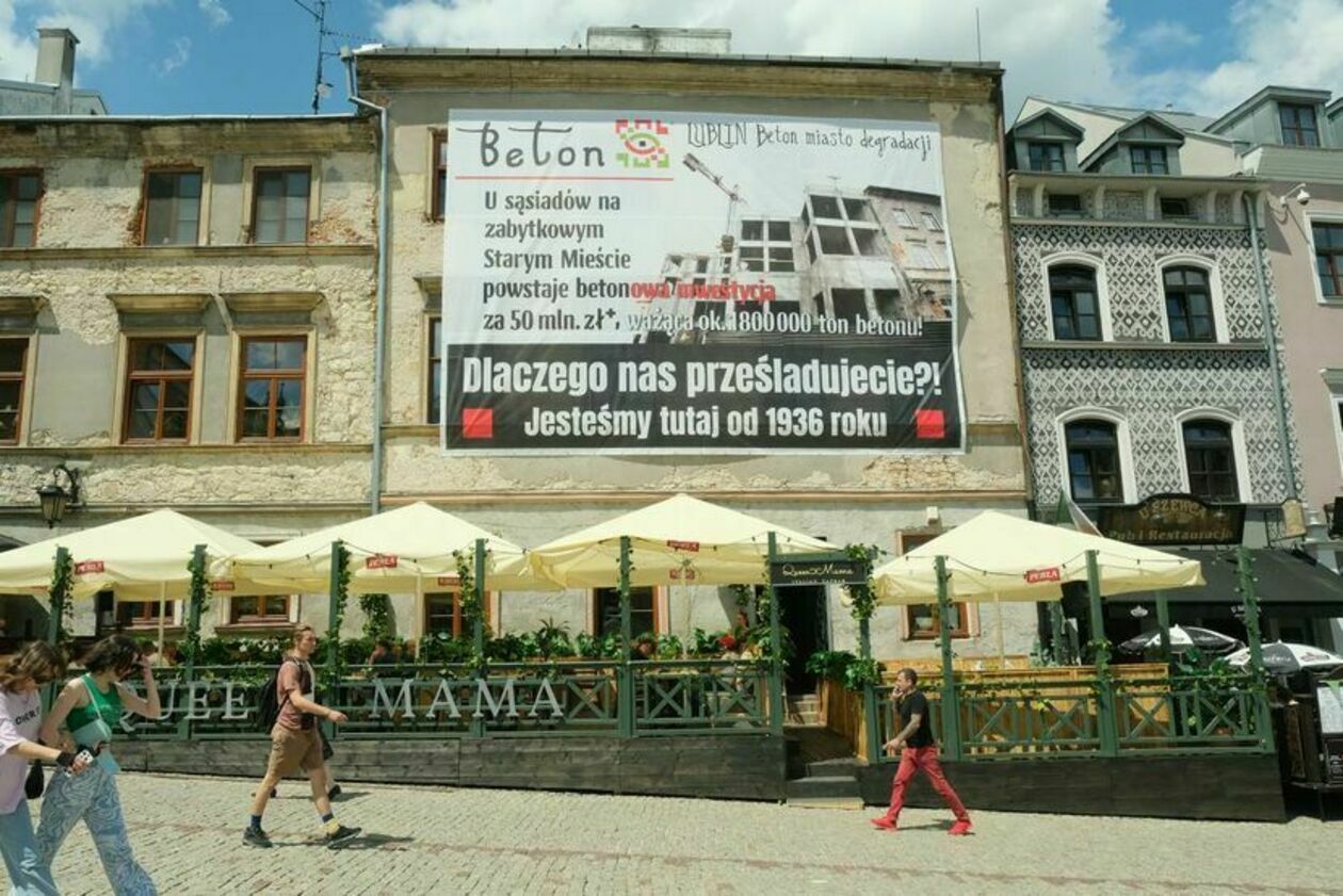 Z AFISZA W weekend na Starym Mieście pojawiły się olbrzymie banery z hasłami: „Lublin Beton miasto degradacji”, „Stop korupcji”, „Stop układom”.