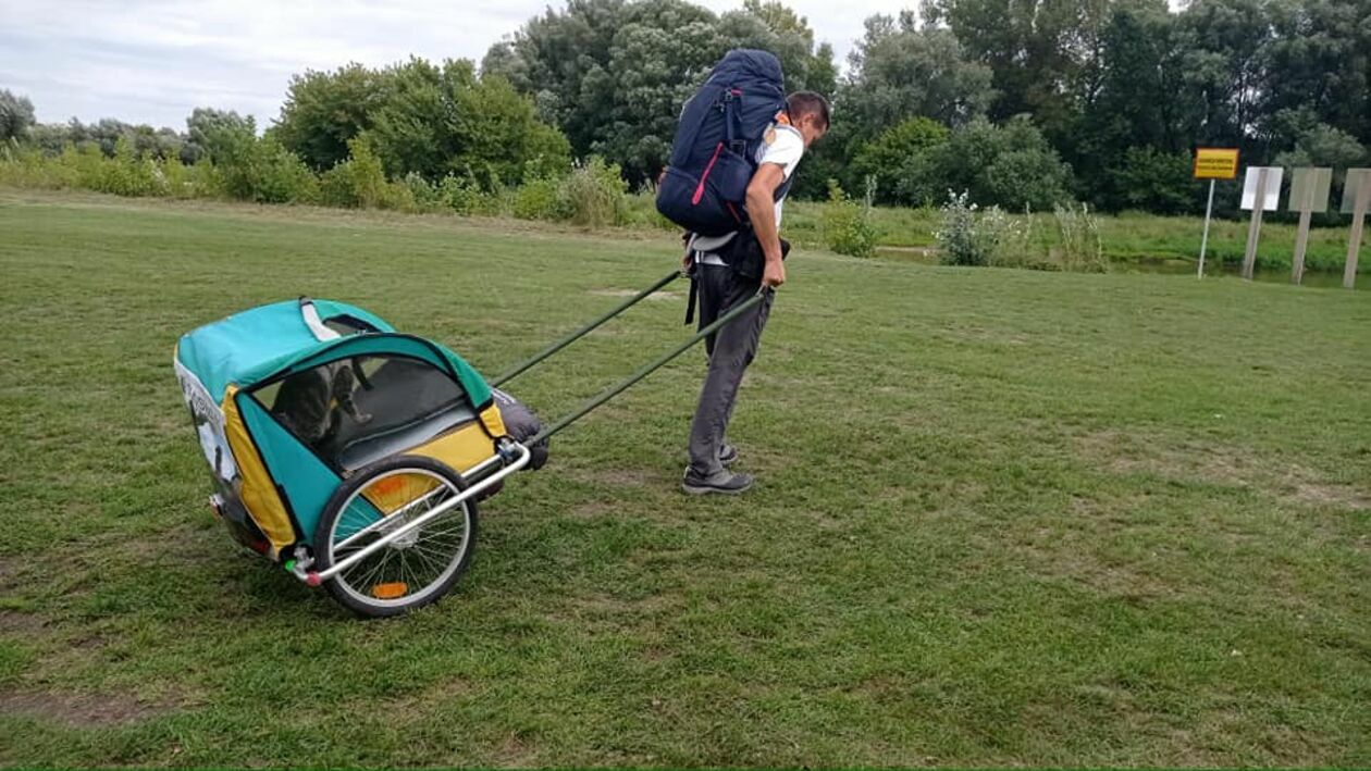 Aby dotrzeć do Tuplic w województwie lubuskim, pan Jacek musi pokonać blisko 700 kilometrów. – Będę wędrował pewnie miesiąc. Codziennie chcę przemierzać nie mniej niż 30 kilometrów – opowiada. Śpi w namiocie, a cały bagaż niesie w plecaku. Natomiast w wózku ciągnie ze sobą jeszcze kota Parysa. – Dostałem go w ubiegłym roku od Kingi właśnie. Już nie pierwszy raz ze mną podróżuje. To dobry towarzysz. Przeszedł już ze mną wzdłuż wybrzeża Bałtyku, bo to nie pierwsza taka moja wyprawa, podczas której nagłaśniam zbiórki charytatywne – tłumaczy pan Jacek.