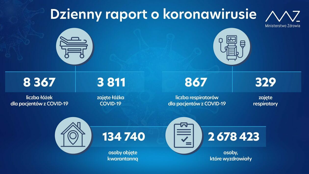 W całej Polsce przez pacjentów z COVID-19 zajętych jest 3811 łóżek – informuje Ministerstwo Zdrowia. Według wczorajszego raportu Urzędu Wojewódzkiego w województwie lubelskim pomocy w szpitalach potrzebują aż 704 osoby.
