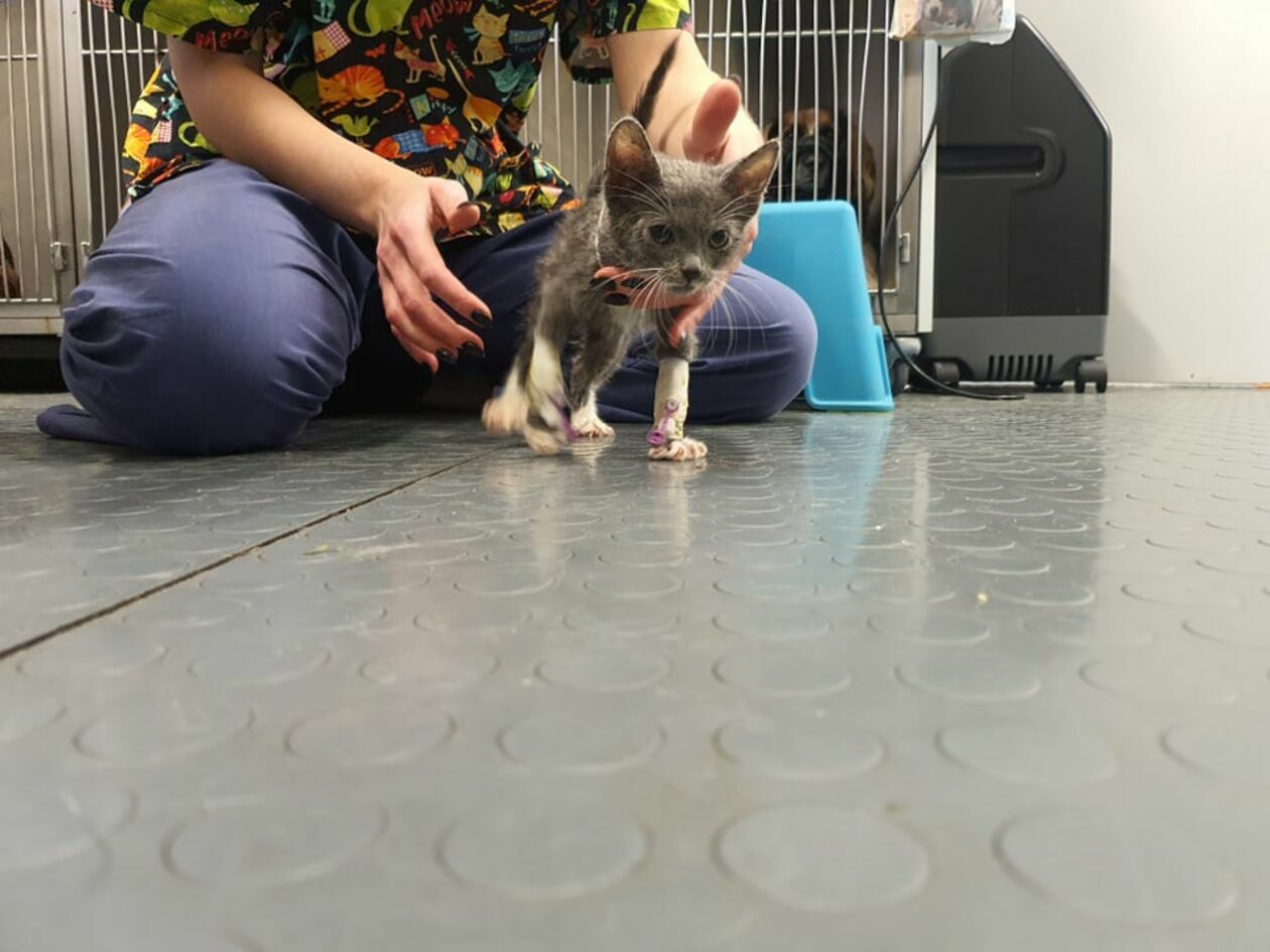 "Kokos" mimo bólu, po kilku dniach zaczął stawać na łapach, ale pełnej sprawności nie odzyska już nigdy.