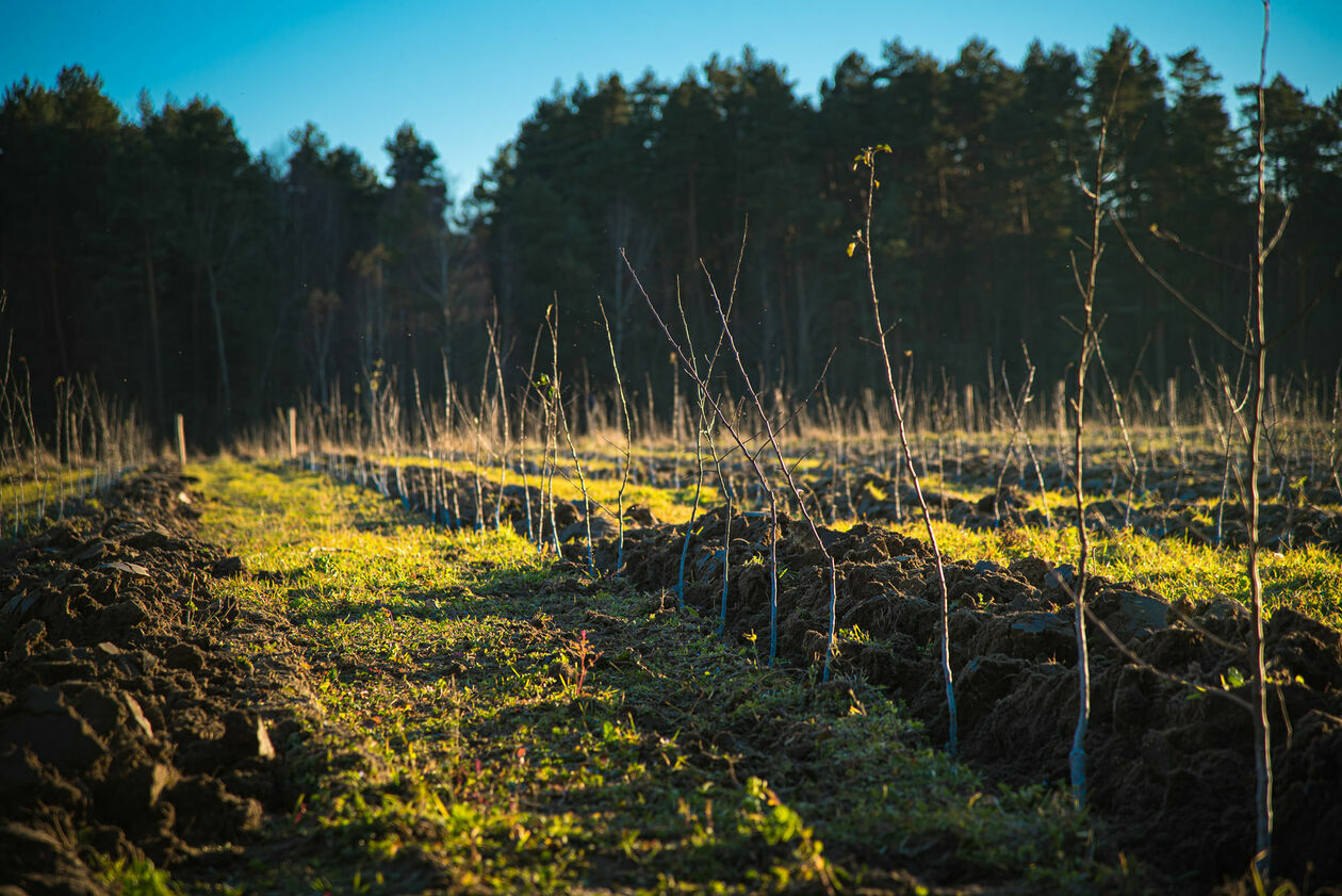 Łąka na terenie leśnictwa Pańków, w okolicy wsi Zielone została zamieniona w sad. Kilka dni temu posadzono tam 2,5 tysiąca młodych jabłonek z myślą o zwierzynie płowej – sarnach i przede wszystkim jeleniach, bo jak zauważają leśnicy, jabłka to jeleni przysmak.