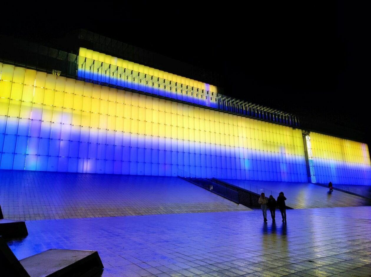 We wtorek w Lublinie odbyła się manifestacja wsparcia dla narodu ukraińskiego. W barwach Ukrainy podświetlono też kilka budynków w mieście, m.in. Wieżę Trynitarską i stadion Arena Lublin. Do niedzieli na niebiesko-żółto rozświetlać ma się także iluminacja na placu Litewskim.