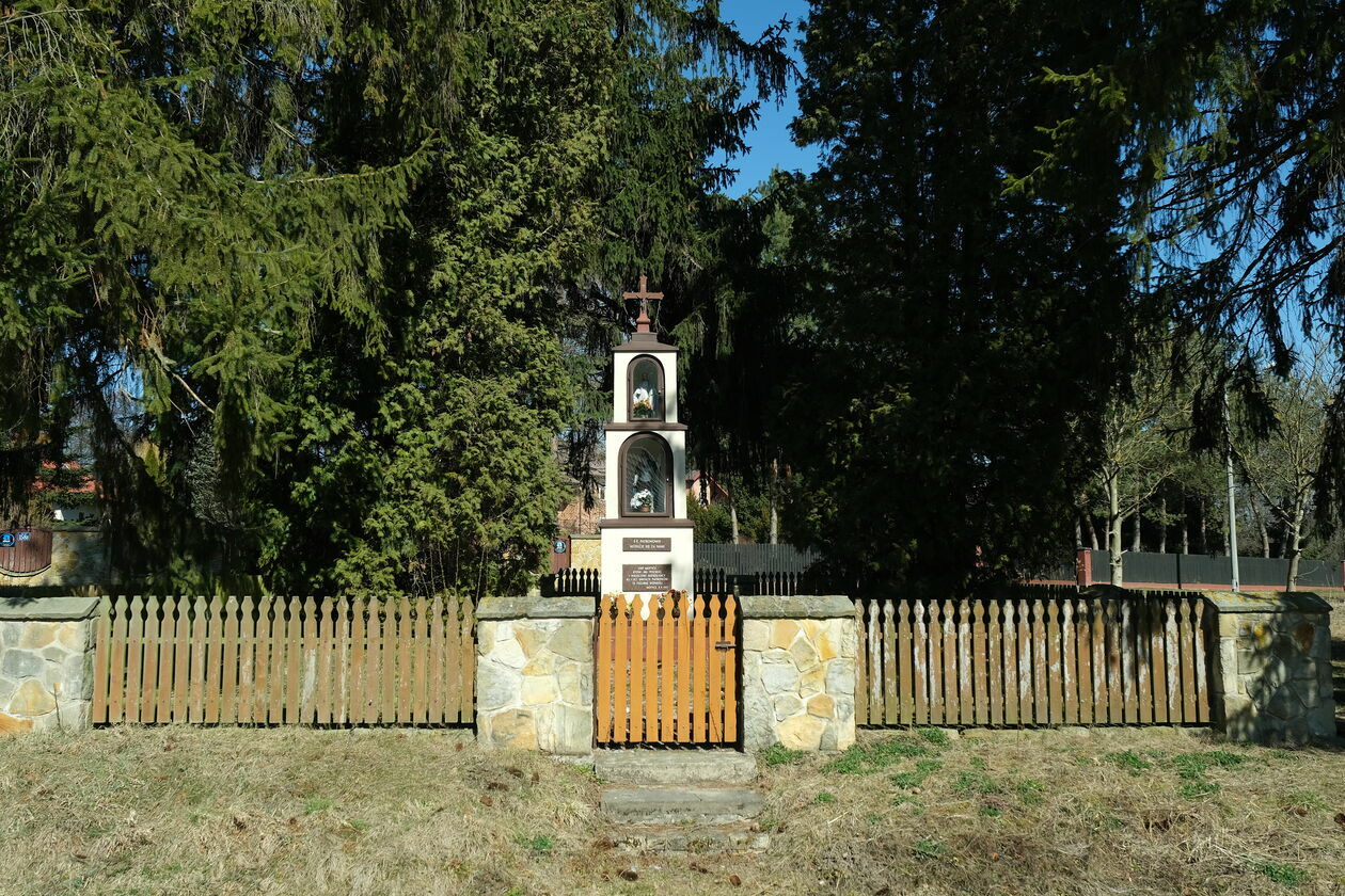 Nieistniejąca karczma, którą zastąpiła kapliczka, była ogromną chatą z bali, krytą gontem. Jej drewniane drzwi zawsze skrzypiały. Okna były nisko nad ziemią tak, że każdy mógł zobaczyć co się dzieje w środku. Tylko od góry były zasłonięte kolorową bibułką, która pełniła rolę firanek. Podłoga była ułożona z wąskich balików. W największej izbie dookoła, przy ścianach stały ławy i stoły. Dzięki temu wszyscy się widzieli i było miejsce do tańca. Wnętrze oświetlały świece, a z biegiem czasu zawieszone pod sufitem naftowe lampy z kloszami.
