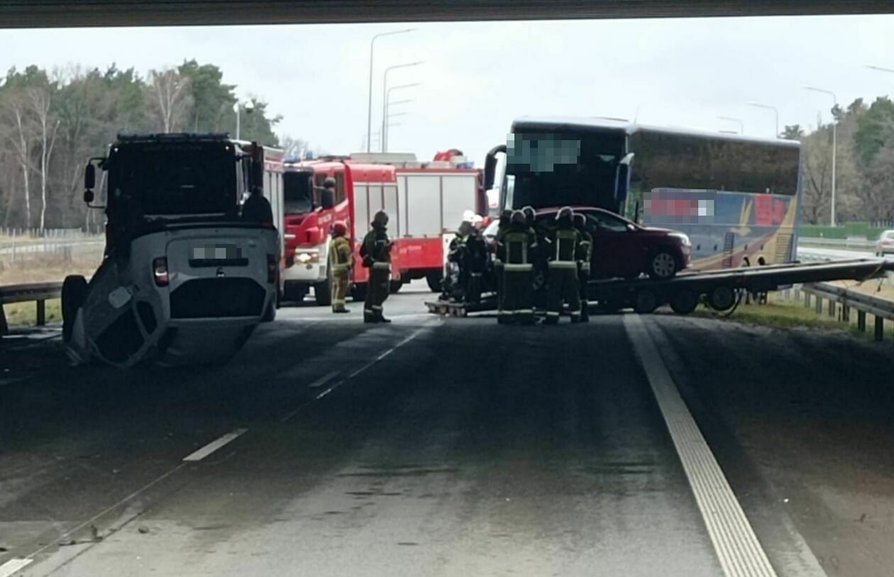Kwadrans przed godz. 13 na drodze ekspresowej nr 17, pomiędzy węzłem Żyrzyn a węzłem Kurów Zachód, samochód osobowy uderzył w barierę energochłonną i dachował. Za nim jechał bus z lawetą, który przewoził trzy inne auta. Kierowca tego pojazdu, widząc co się dzieje, zaczął hamować.