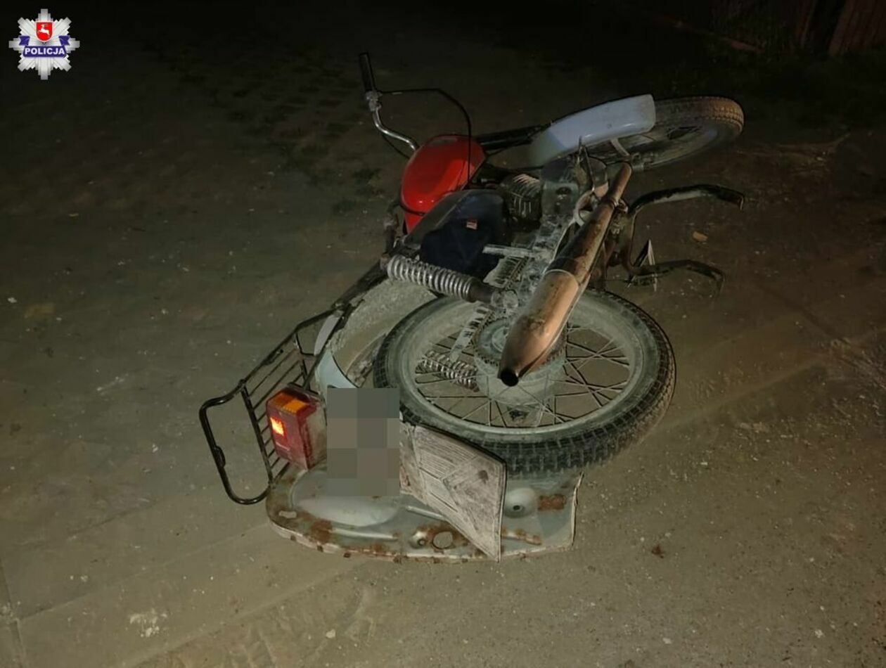 Do groźnego zdarzenia doszło ok. godz. 21 w Majdanie Wielkim (powiat zamojski). Jak wstępnie ustalili policjanci motocyklista jechał w kierunku Krasnobrodu. Za zakrętem, już na prostym odcinku drogi nagle "złapał" piaszczyste pobocze. – I stracił panowanie nad pojazdem. Motocykl marki WSK przewrócił się na jezdnię – relacjonuje st. asp. Dorota Krukowska-Bubiło z Komendy Miejskiej Policji w Zamościu.